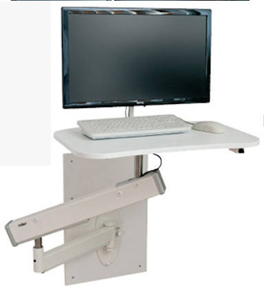 Electric adjustable dual arm for monitor and keyboard.