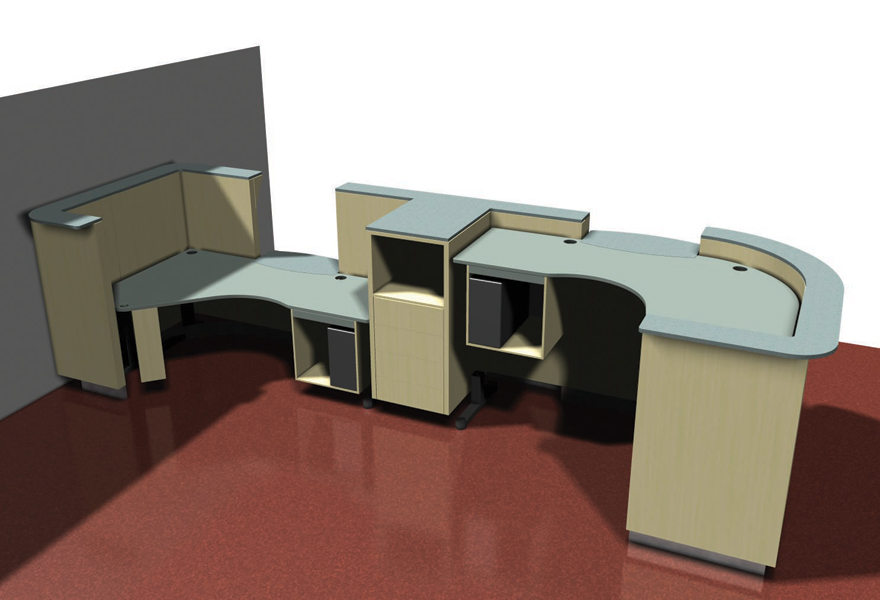 Vår receptionsdisk är utvecklad utifrån receptionistens ergonomiska krav och är även tillgänglighetsanpassad för rullstolsburna patienter och barn.