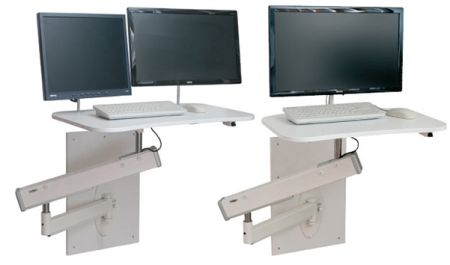 För en eller två bildskärmar. Skärmen kan steglöst vinklas, höjas och sänkas. Eletrisk höj- och sänkning. Väggmonterad. Tangentbordsskivor finns i olika material, plana eller med handlovsstöd för en skärm. Förmonterade kanaler för kablar. Vikt 27 - 29 kg.
