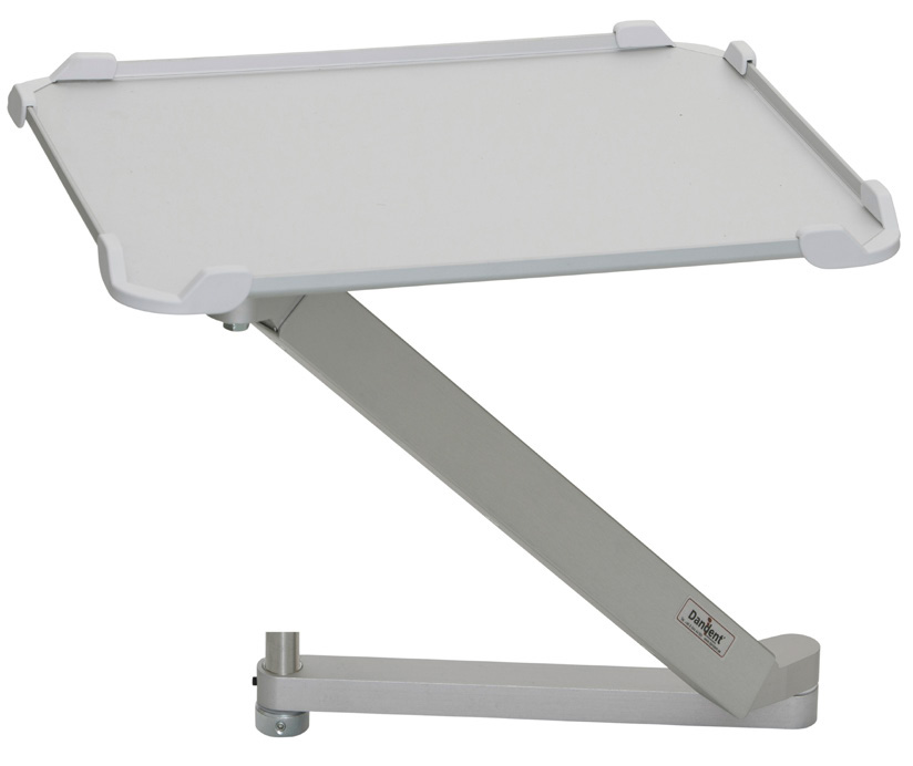 Flexibel höj- och sänkbar brickarm som går att svänga åt höger och vänster. Smart produkt när en extra avlastningsyta behövs, plats för två dentalbrickor. Monteras enkelt under bänk eller på vägg med våra två olika fästen. Ergonomisk både vid stående och sittande arbetsställning, då den är höj- och sänkbar med ett handsgrepp. Levereras med hörnskydd.