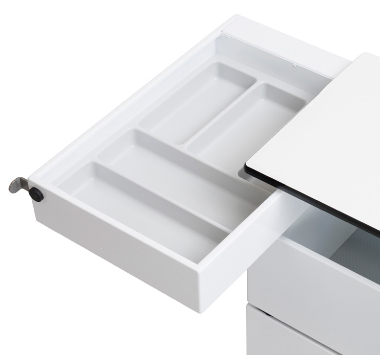 Lådorna är enkla att öppna, då endast en magnet gör att de håller sig stängda. Lådmodulerna är upphöjda från golv för att undvika att damm och smuts ska hamna i lådorna.
