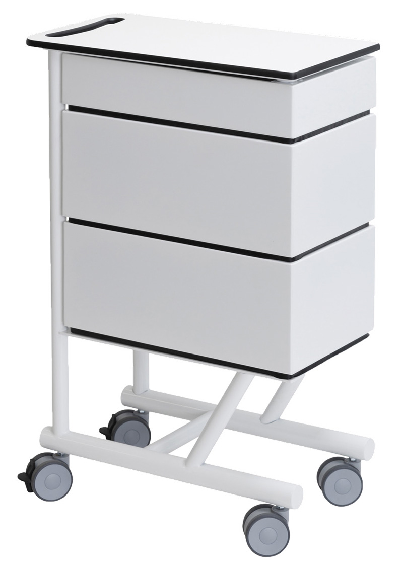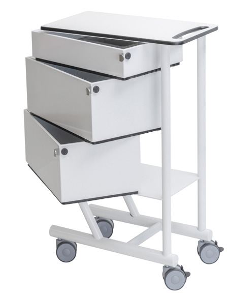 Smidig materialvagn för olika behov som enkelt förflyttar förbrukningsmaterial och instrument hygieniskt mellan förråd och behandlingsrum.