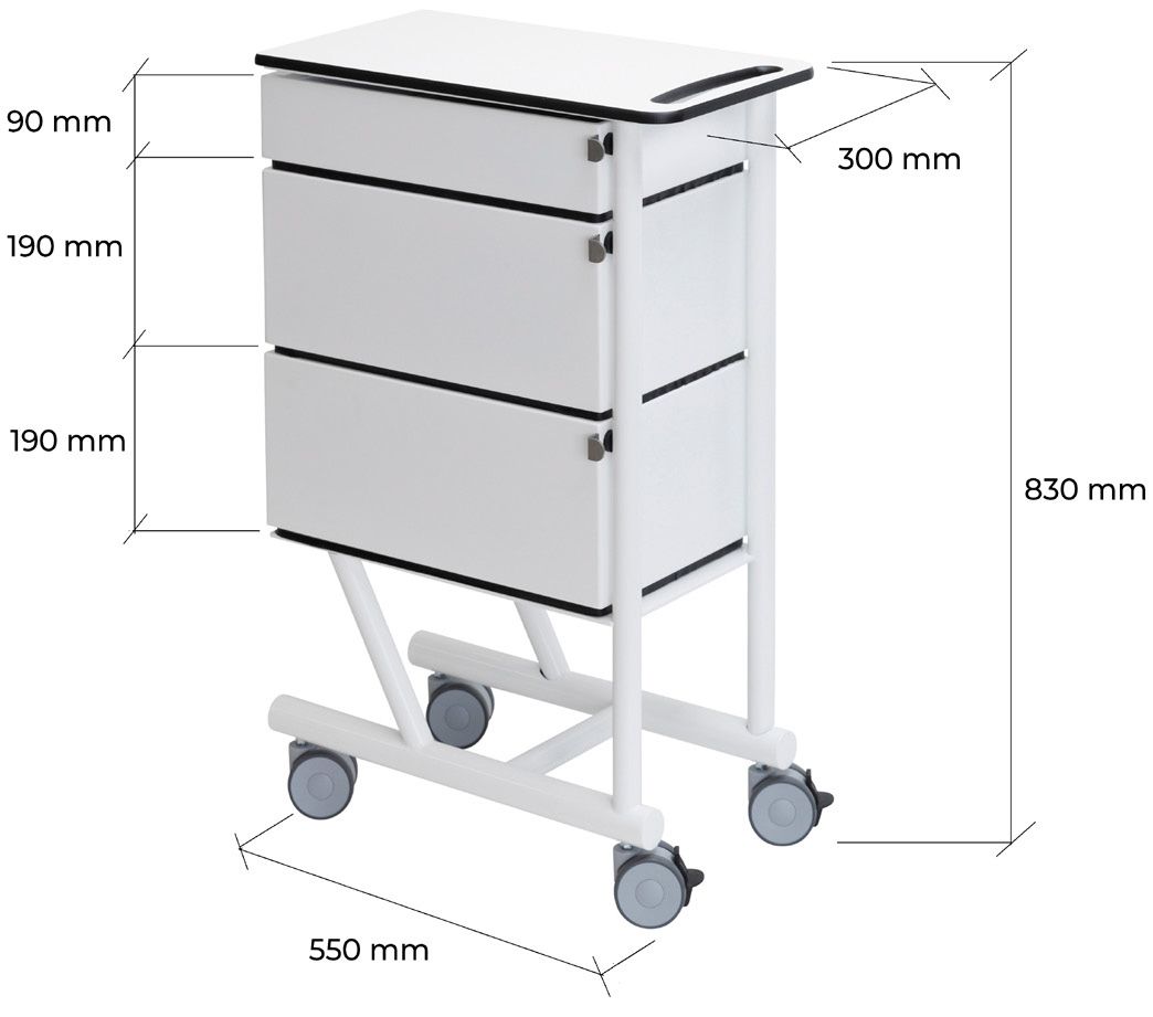 Mått: B 550 mm, D 300 mm, H 830 mm