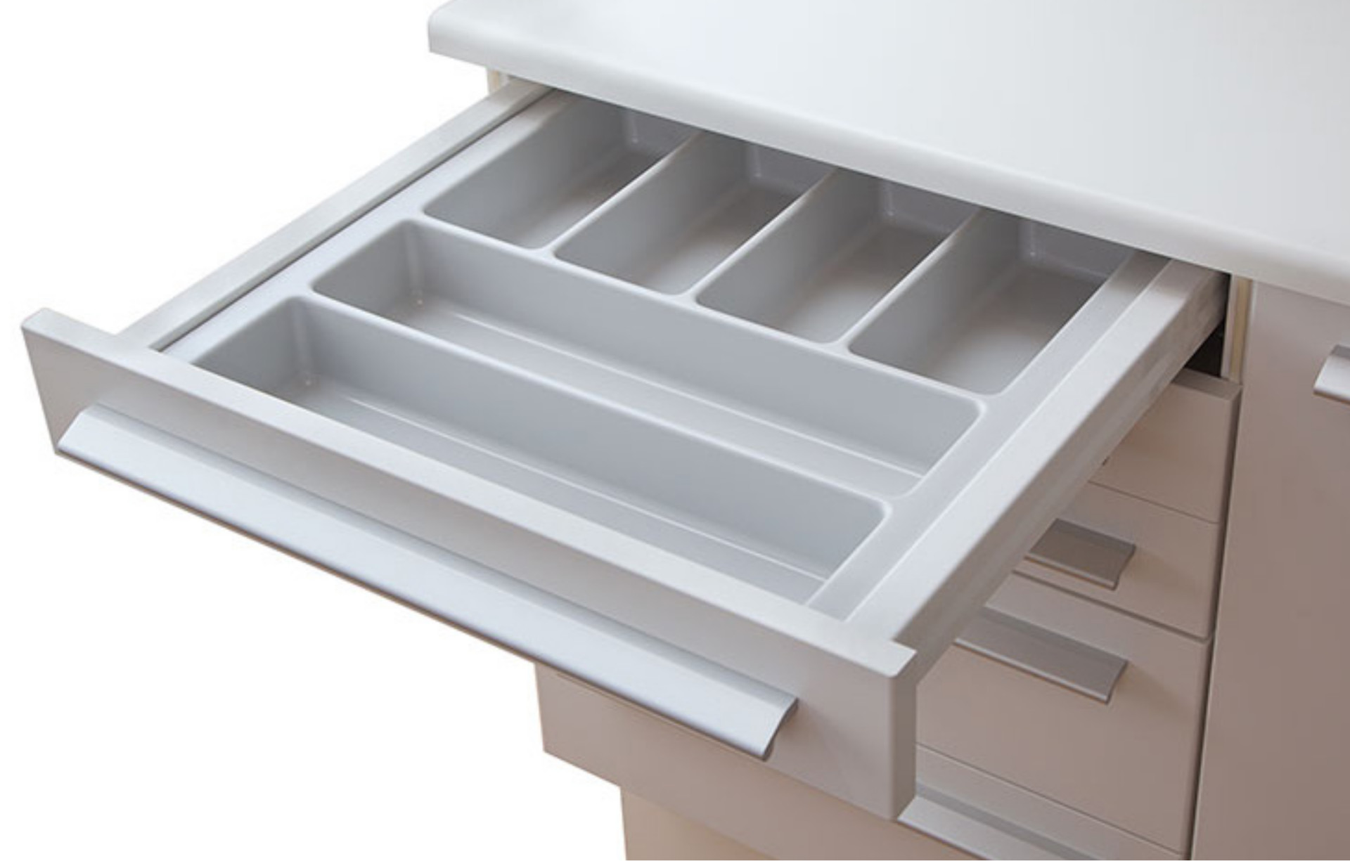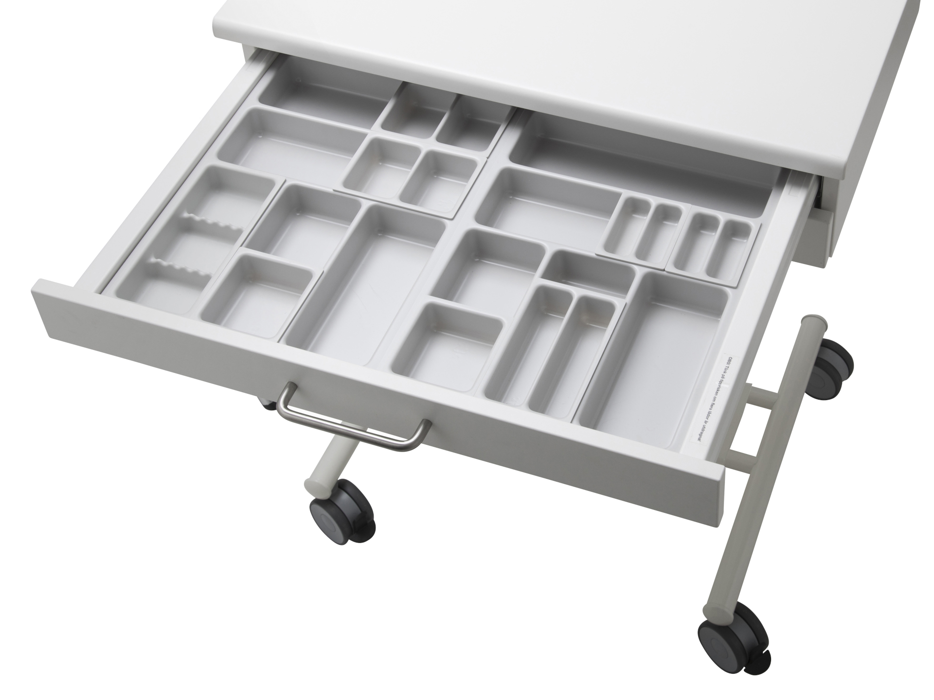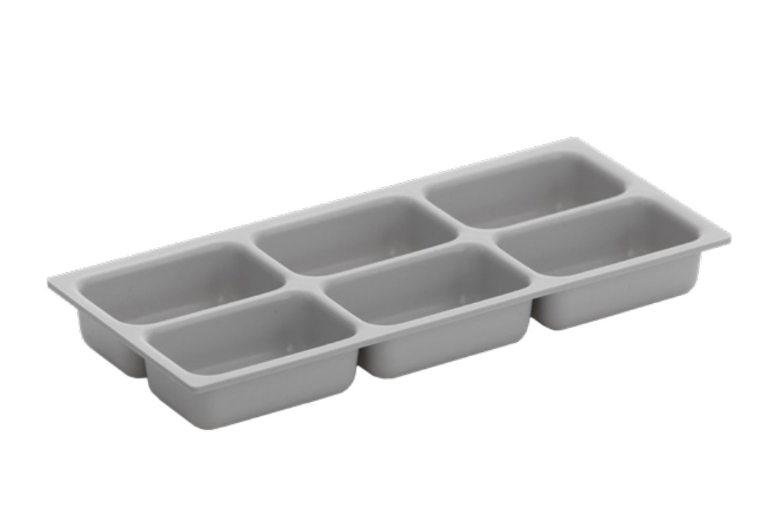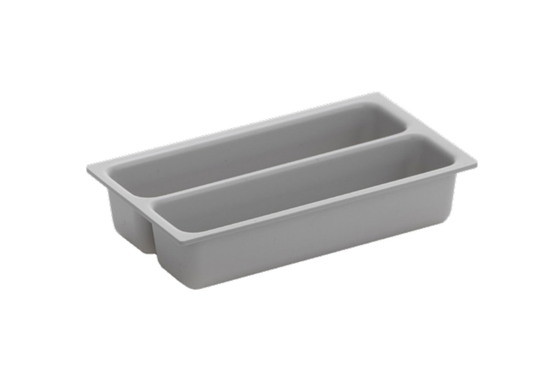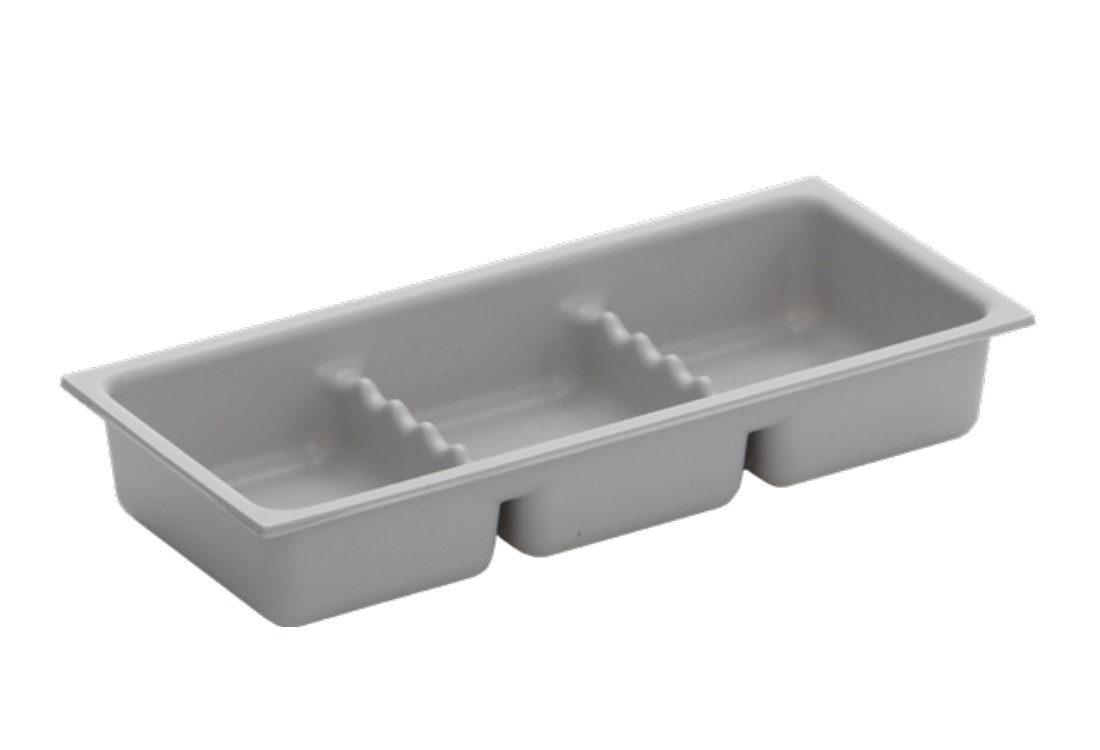 Iläggslådor gjorda i vakuumformad ljusgrå PS-plast för dentalbruk. Passar i samtliga botteninsatser. Diskas för hand i ljummet vatten. Lådorna är märkta med plastkvalitet för att underlätta framtida återvinning.
