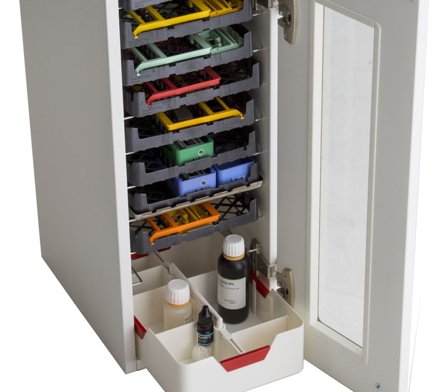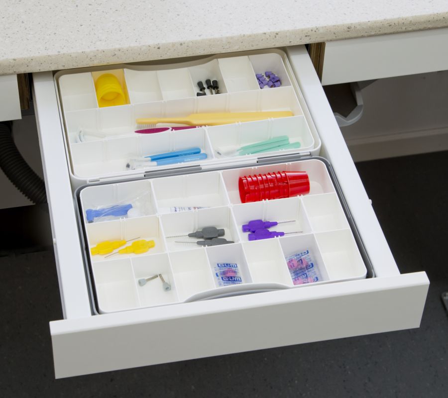 Lådorna är framtagna tillsammans med tandvårdspersonal och passar vårt standard brickskåpsystem.